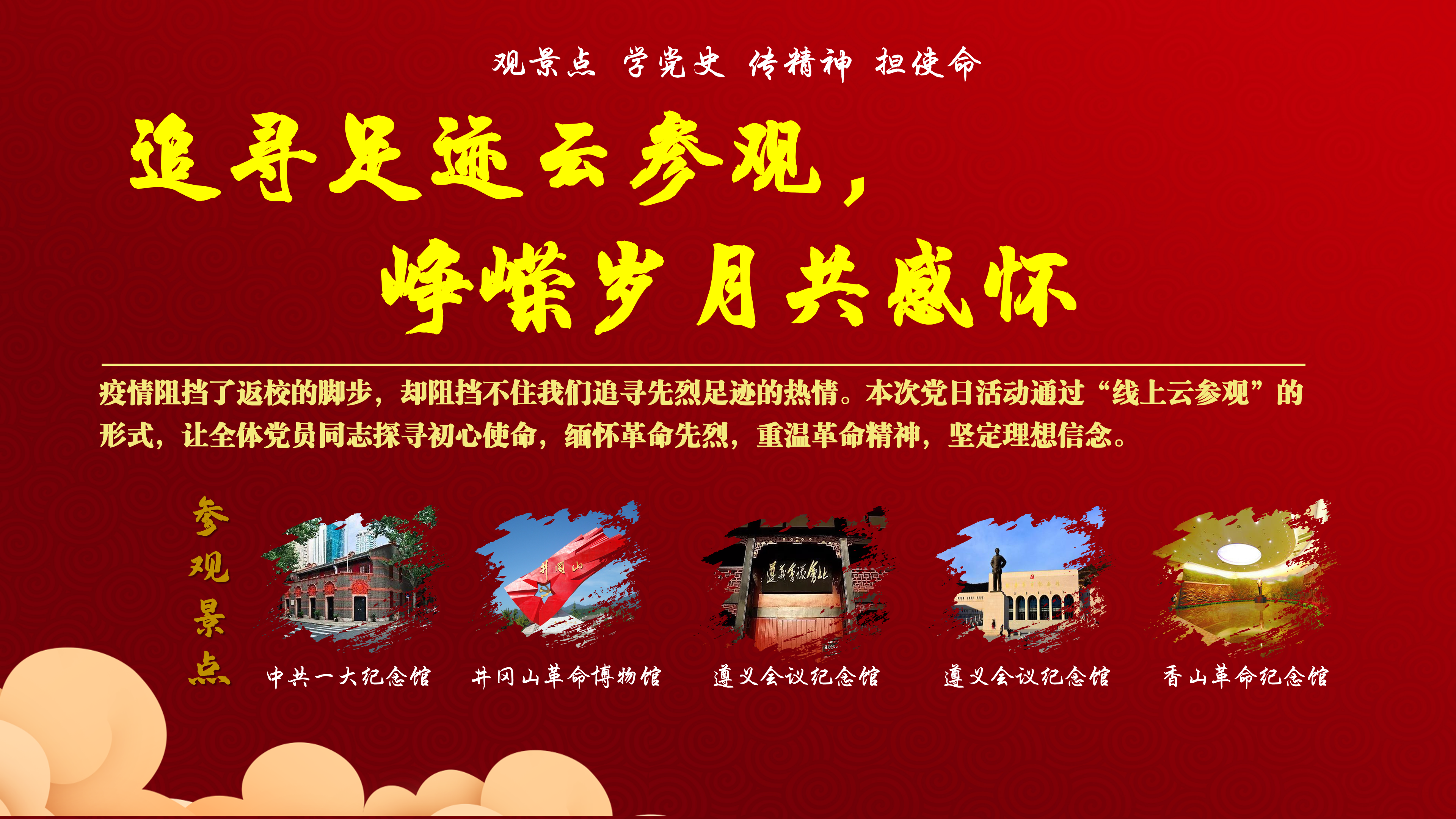党员与积极分子们根据时间主轴,先后“云参观”了中共一大纪念馆、井冈山革命博物馆、遵义会议纪念馆、延安革命纪念馆和香山革命纪念馆等五处红色经典景点。